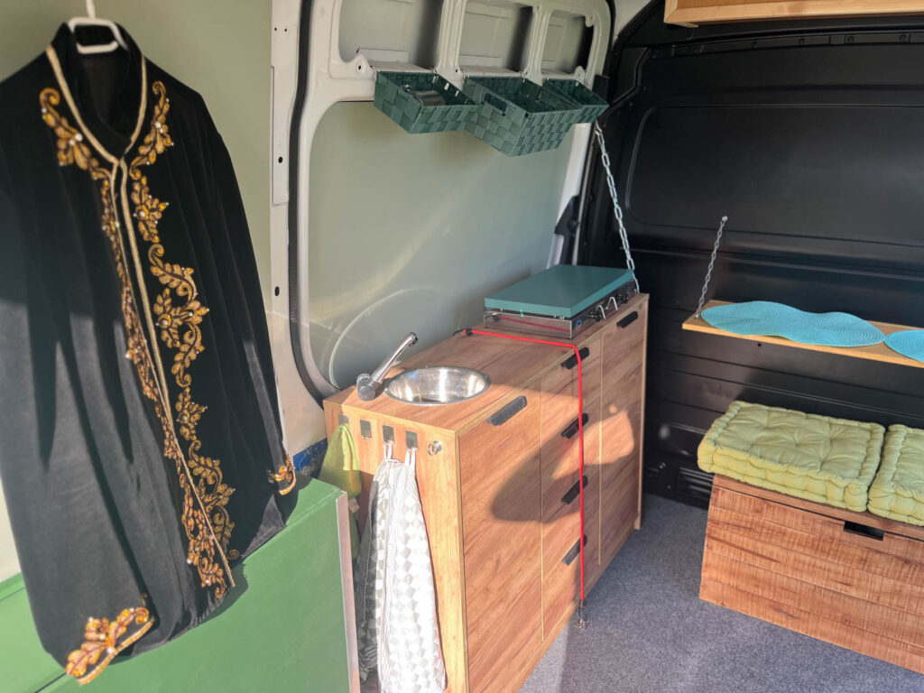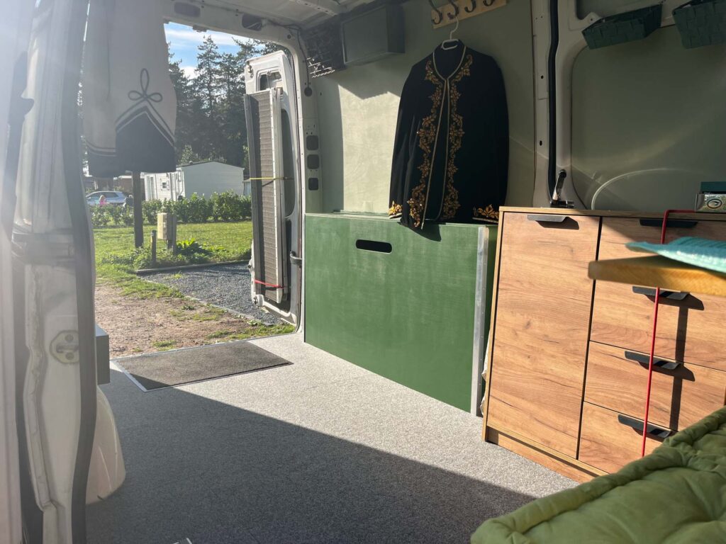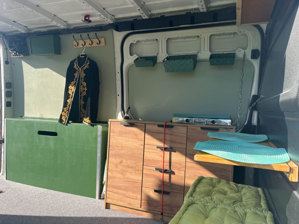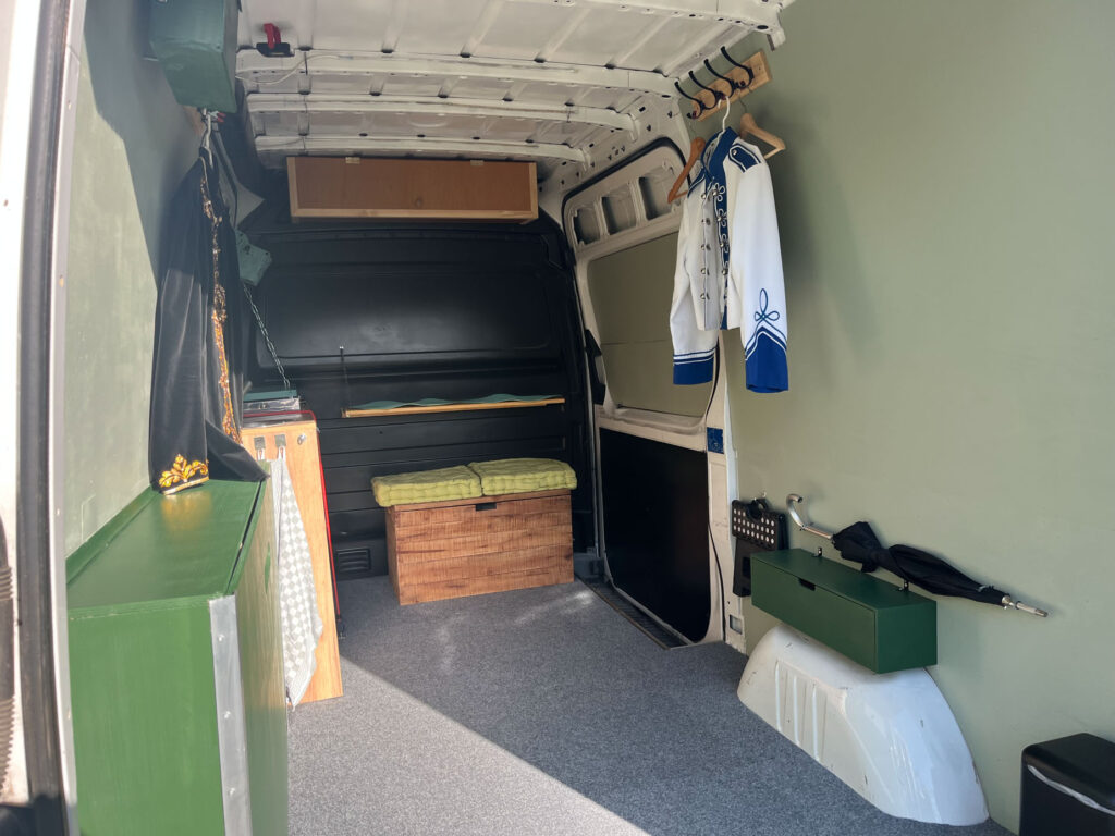 Ook nog een uitdaging was om de bus niet sec als camper in te richten, zodanig dat ie aan de RDW eisen moest voldoen. De bus is prima zo zonder vast bed en scheiding tussen cabine en laadruimte dan mag je gewoon met een grijs kenteken blijven rijden als zzp’er.